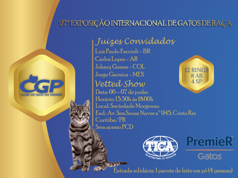 Somos um clube charter autorizado pela TICA – The Cat International Cat Association sob o nº 778, e desde quando autorizados, seguimos a risca todos os procedimentos, como realização de exposição de animais de raça, objetivando o intercâmbio entre criadores e juízes TICA conhecedores da raça, eventuais juízes de outras bandeiras convidados, com amor ao debate, difundindo outrossim, exemplo de boas práticas. Ao que tange às normas do Direito nacional, somos uma Associação de Direito Privado, sem fins lucrativos. Vera Gabardo Presidente CGPDIRETORIA